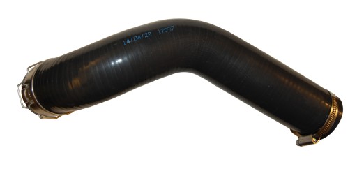 Oferowany przewód to wąż ciśnieniowy powietrza, wzmacniany tekstylnie (w potrójnym oplocie sznurowym z włókna kevlarowego). Jest oczywiście nowy. Silikonowy skład mieszanki z jakiej został wykonany sprawia, że został przeznaczony do pracy w układzie turbodoładowania silnika, tj. w wysokiej temperaturze, pod wysokim ciśnieniem i jest odporny na kontakt z olejem, pojawiającym się w układzie turbodoładowania. Jego kształt jest identyczny z przewodem oryginalnym. Jest to o tyle istotne, że w czasie jazdy przewód pracuje i nie może się załamywać, ani nigdzie obcierać.