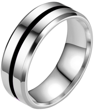 Серебряное кольцо-печатка с черной СТАЛЬНОЙ линией