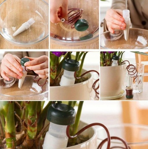 Dostarczanie wody odbywa się poprzez ceramiczny stożek, umieszczony w doniczce z rośliną. Nadaje się do każdego rodzaju roślin, która potrzebuję nawadniania.