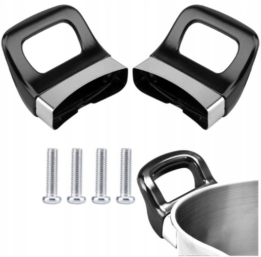 Uchwyty uniwersalne pasują do wszystkich garnków, przy których uszy montowane są na dwie śrubki 5 mm, o długości 14 mm. Bardzo łatwy montaż.