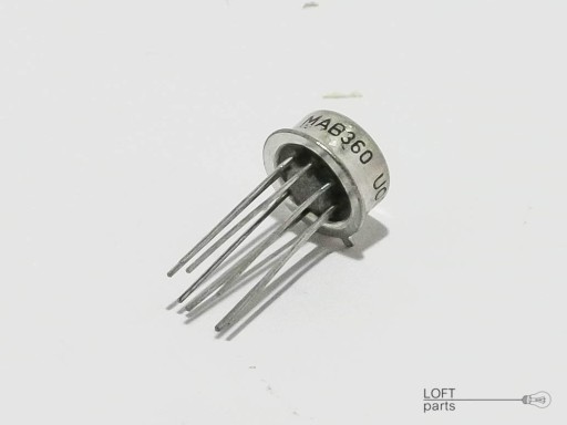 Układ scalony MAB360 (zamiennik LM360) wyprodukowany przez Teslę. Jednonapięciowy komparator. Nowy, nieużywany (NOS).