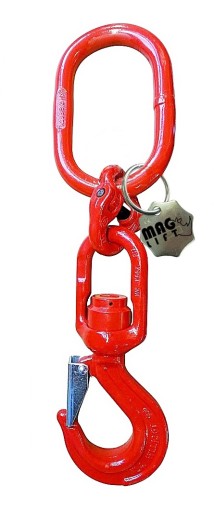 Zawiesie z ogniwem zbiorczym /wym. ogniwa 180 x 100 mm / oraz z hakiem obrotowym na łożysku kulkowym zabezpieczeniem przed wypięciem cięgna z zapadką