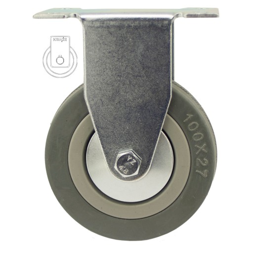 Koło składa się z polipropylenowej piasty oraz z niebrudzącej gumowej opony, posiada łożysko ślizgowe, wersja z osłonką.