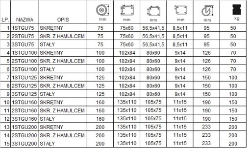 Zestaw kołowy mocowany na płytkę, o kodzie 3STGU200, w tabeli pod pozycją 15.
