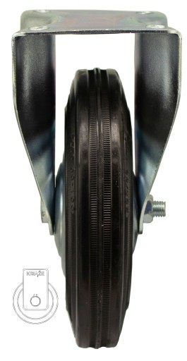 Koło posiada piastę metalową oraz oponę gumową, obudowa pokryta jest ocynkiem.