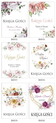 UWAGA! Cena obejmuje jedną księgę gości, projekt okładki oraz na życzenie: pierwszej strony widocznej po otwarciu którą wklejamy do księgi. Projekt możemy przygotować na podstawie każdego z naszych zaproszeń.