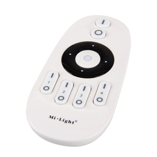 Pilot FUT007 MiLight to sterownik radiowy przeznaczony do obsługi wszystkich odbiorników MiLight/MiBoxer w wersji White (do jednokolorowych taśm LED) Nasz pilot umożliwia obsługę aż 4 stref oświetlenia, a do każdej z nich możemy przypisać dowolną ilość urządzeń/odbiorników. Ściemniacz FUT007 umożliwia nam płynną regulację jasności światła oraz temperatury barwowej przy pomocy wygodnych 4-kierunkowych przycisków. Pilot FUT007 zasilany jest bateriami 2 x AAA.