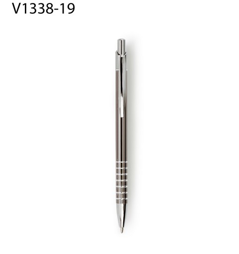 Długopis ze srebrnymi elementami.