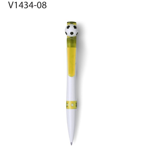 Długopis "piłka nożna" z półprzezroczystymi kolorowymi elementami.