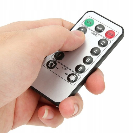 Użyj 13-klawiszowego pilota zdalnego sterowania, aby ułatwić obsługę; Wybierz swój ulubiony tryb spośród 8 trybów oświetlenia: Combination, In wave, Sequential, Slowly glow, Chasing/Flash, Slow fade, Twinkle/Flash, Steady On. Światło będzie 6 godzin włączone i 18 godzin wyłączone po naciśnięciu przycisku "TIMER" na pilocie.
