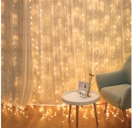 LAMPKI DRUCIKI KURTYNA 3X3M BIAŁE CIEPŁE