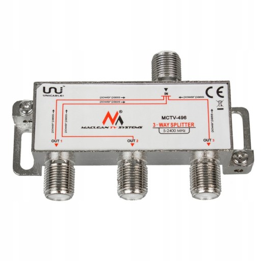 Rozgałęźnik satelitarny splitter trójnik 3 wyjścia 1/3 Unicable MCTV-496 Maclean 5-2400MHz