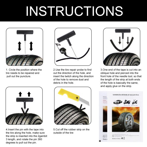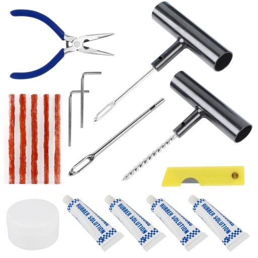 58 zestawów do naprawy opon znajduje się w przenośnym opakowaniu, można je łatwo przechowywać w szafce narzędziowej lub zabrać ze sobą w drogę, co zajmuje mniej miejsca i jest łatwe do przechowywania i przenoszenia.