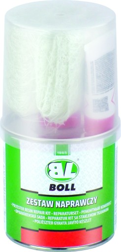 Boll zestaw naprawczy składa się z żywicy poliestrowej (242 g), utwardzacza (8 g) oraz maty szklanej (0,25 m²). Służy zarówno do wypełniania znacznych ubytków materiału w karoseriach samochodowych, łodziach, przyczepach itp. jak i do wzmacniania i usztywniania konstrukcji naprawianych elementów. Żywica posiada bardzo dobrą przyczepność do metalu, powierzchni plastikowych, stali, szkła, drewna i betonu. Jest odporna na temperaturę do 80° C, wpływ czynników atmosferycznych, benzyny, smarów, olejów, rozcieńczonych kwasów i zasad. Cechuje się dużą sprężystością i krótkim czasem utwardzenia. Po utwardzeniu posiada bardzo dużą wytrzymałość mechaniczną, może być szlifowana i pokrywana dowolnymi szpachlami poliestrowymi.