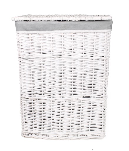 BIAŁY KOSZ WIKLINOWY NA PRANIE Z POKRYWĄ I SZARYM MATERIAŁEM 44x33x58h cm