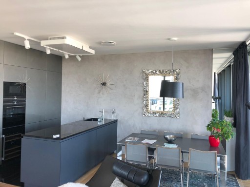 2 Etap Na wcześniej zagruntowaną suchą powierzchnię nierdzewną pacą wenecką nakładamy tynk dekoracyjny Efekt betonu na grubość ziarna.