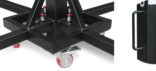 Jest wyposażony w cztery odłączane nogi stabilizujące, wyposażone w podnośniki poziomujące, które mają wzmocnione nylonowe uchwyty obrotowe (ergonomiczna konstrukcja) z podwójnym gwintem (szybsza regulacja) ułatwiające poziomowanie oraz chromowane stopki z antypoślizgową gumą formowaną wtryskowo naramienniki.