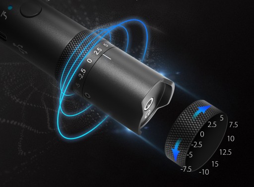 Mikrofon SYNCO D30 wyposażony jest w bezstopniowe pokrętło analogowej regulacji wzmocnienia sygnału, które zapewnia możliwość bezstopniowego, nieliniowego regulowania wzmocnienia sygnału w zakresie od -10dB do 15dB.