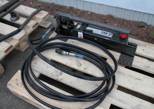 Ręczna pompa hydrauliczna umożliwia pracę wszystkich narzędzi bez napędu elektrycznego. Zapewnia identyczne ciśnienie jak pompa elektryczna.