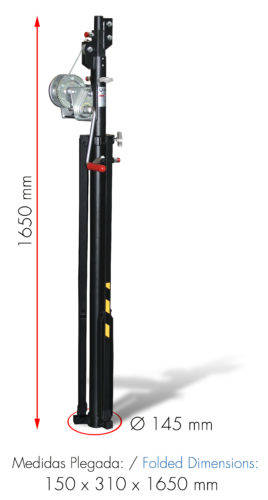 Kompaktowy podnośnik specjalnie zaprojektowana do składania w celu ułatwienia transportu. Jest certyfikowany do podnoszenia ciężarów o masie 100 kg na wysokość 4,00 m i posiada górne przyłącze Ø 35 mm.
