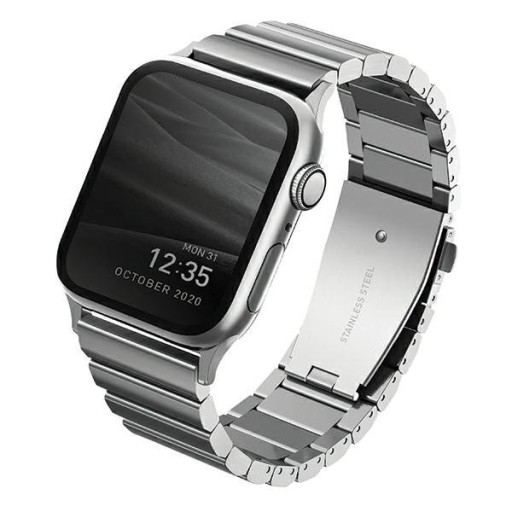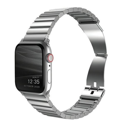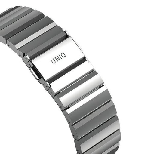 Uniq pasek Strova wykonany z najwyższej jakości stali nierdzewnej 304 z eleganckim, drobno szczotkowanym wykończeniem. Bransoleta Strova doskonale łączy się z Twoim Apple Watch, zapewniając ponadczasową elegancję. Zawiera narzędzie do regulacji ogniw z dziesięcioma zdejmowanymi ogniwami, które można dostosować do idealnego dopasowania na nadgarstku. W komplecie smukłe zapięcie typu quick-release dla bezpiecznego zamknięcia.