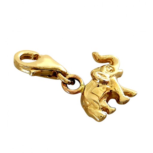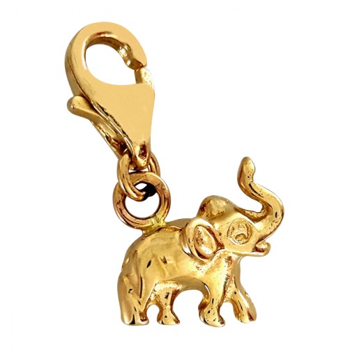 Zawieszka do bransoletki typu charms w kształcie słonika na pewno przyniesie Ci szczęście! Słonik zawieszony jest na karabińczyku, który w łatwy sposób zaczepisz do bransoletki lub dowolne inne miejsce, np do portfela czy kluczy aby szczęście nie opuszczało Cię nawet na krok! Zawieszka wykonana jest w całości z żółtego, 8 karatowego złota.