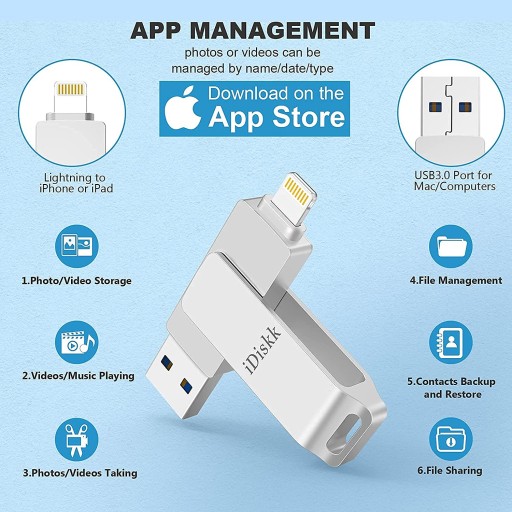 Pamięci USB z systemem iOS, Łatwo zwolnij miejsce na iPhonie i iPadzie. bez użycia kabla lub iCloud.