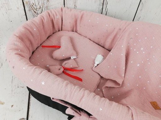 - wypełniony mięciutka włókniną antyalergiczną o o gramaturze 100 g/m2 co sprawia że jest miękki , elastyczny, miły w dotyku a przy tym idealnie dopasowuje się do gondoli.