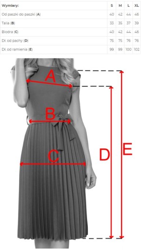 wymiary: (mierzone na płasko bez naciągania - porównaj ze swoją sukienką - nie mierz siebie)