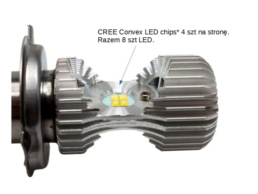 - Źródło światła : CREE Convex LED chips - 8 szt na żarówkę.
