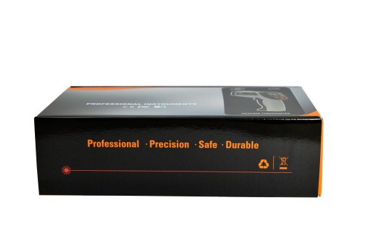 Wysokiej jakości termometr bezkontaktowy marki Benetech o zakresie temperatur od -50 do +750 °C. Urządzenie wyposażone jest w celownik laserowy, który umożliwia precyzyjne nacelowanie badanego punktu. W urządzeniu zastosowano dobrej jakości materiały, a ergonomiczna budowa poprawia wygodę użytkowania termometru. Podświetlany KOLOROWY wyświetlacz umożliwia pracę z urządzeniem w ciemności. Pirometr wyposażony jest w funkcję automatycznego wyłączenia zwiększając oszczędność w zużyciu baterii.