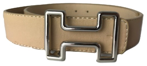 Pasek damski w kolorze beżowym z ozdobną klamrą.
