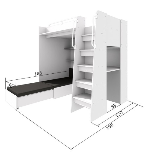 Двухъярусная кровать JSM7 с диваном и письменным столом, белый матовый