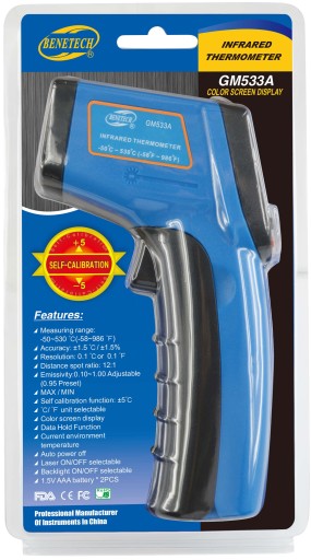 ✅ BEZDOTYKOWY TERMOMETR LASEROWY PIROMETR BENETECH GM533A (-50 +530°C)
