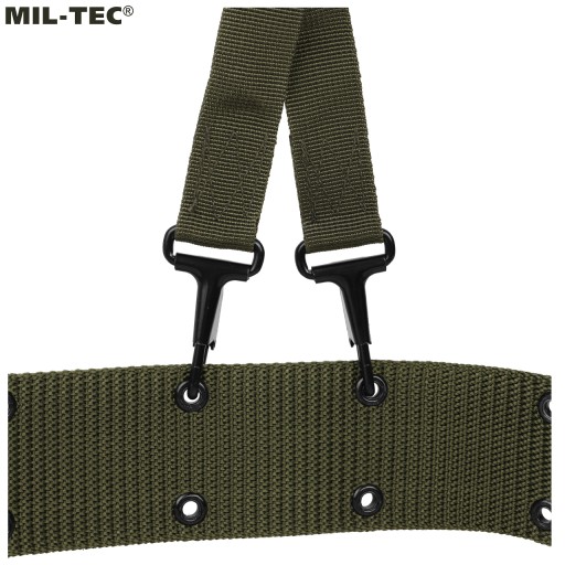 Bardzo mocny, parciany pas niemieckiej marki Mil-Tec. Dostosowany do amerykańskiego systemu ALICE - wyposażony jest w system oczek służący do podpięcia szelek ładownic, manierek i innych elementów wyposażenia wojskowego.