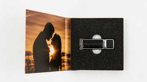 Nasze etui pudełko na Pendrive z nadrukiem fotograficznym idealnie nadaje się do przechowywania Pendrive ślubnego, z komunii, 18-stki i innych.