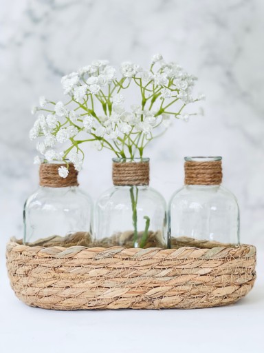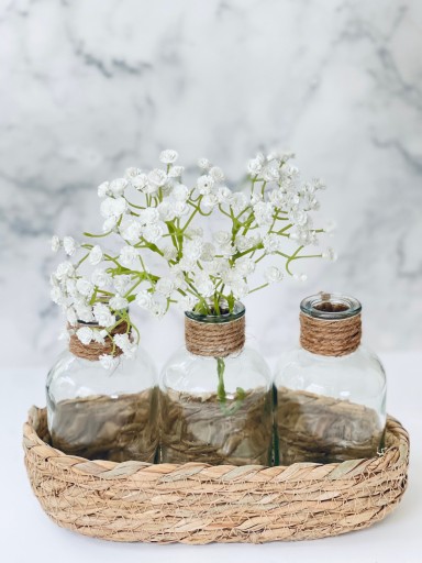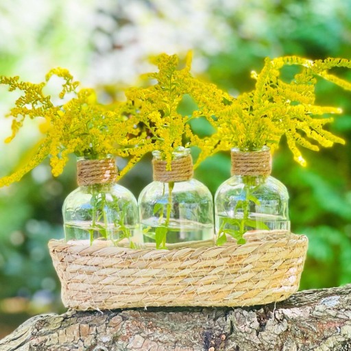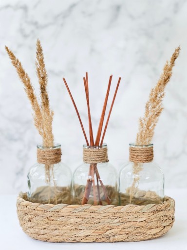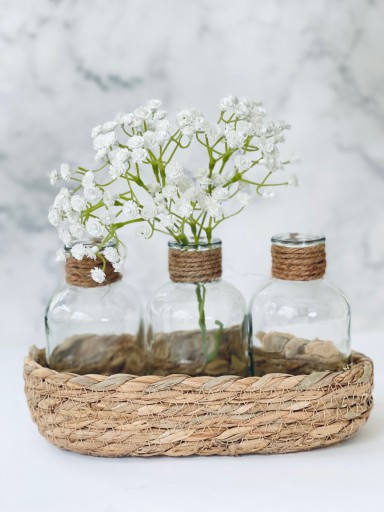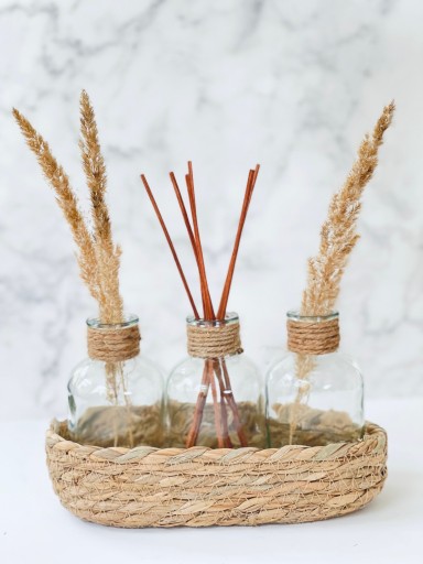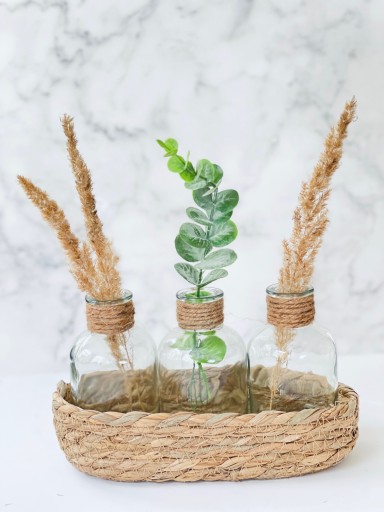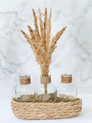 - Zestaw składa się z 3 szklanych buteleczek + koszyczka z naturalnej trawy