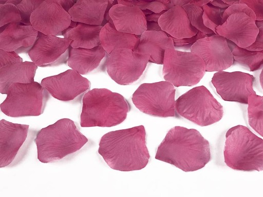 "Płatki róż w kolorze różowym, zapakowane w woreczek. Pakowanie: 1 opakowanie zawiera 500 sztuk. "