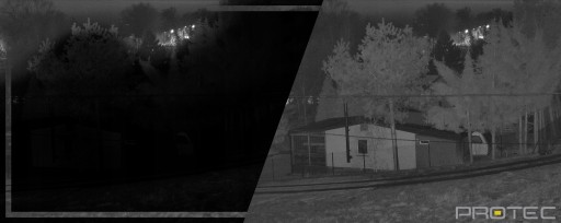 Promiennik podczerwieni kamer Protec uruchamia się automatycznie kiedy jest za mało światła. Takie rozwiązanie pozwala na skuteczną obserwację obszaru bez obaw, że jakiś fragment terenu pozostanie niewidoczny.
