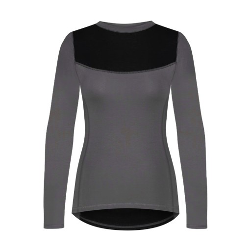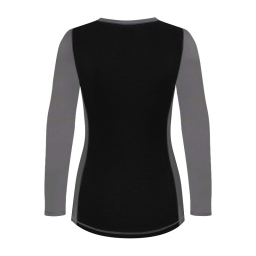 Koszulka damska Woolmed z długim rękawem i wstawką z przodu GRAFITOWO-CZARNA rozmiar M