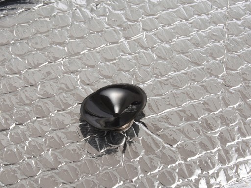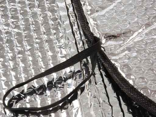 - Posiada z dwóch stron materiał odbijający promienie słoneczne