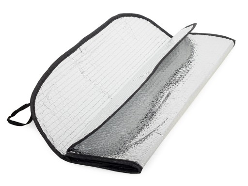 Dodatkowo mata na szybę posiada z dwóch stron materiał odbijający promienie słoneczne.