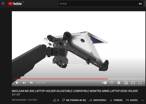 - Uchwyt biurkowy laptopa Maclean 11"-17" MC-836