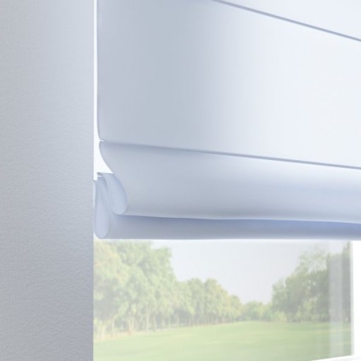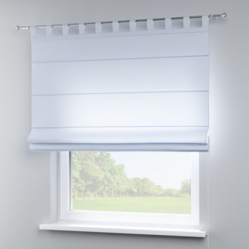 Roleta rzymska Verona na szelkach, do zawieszania na karniszu rurowym. Wykończona na prosto bez falbany. Szelki mają długość 10 cm.