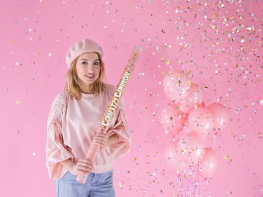 Tuba strzelająca, wystrzałowe konfetti, srebrno-złote kółka, urodziny, 80cm