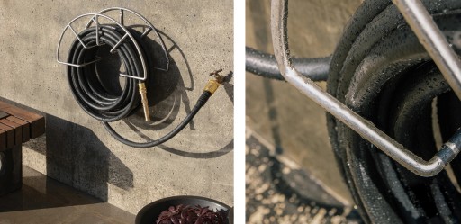 Wieszak na wąż ogrodowy ze stali nierdzewnej.