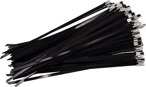 - opaski zaciskowe ze stali nierdzewnej AISI 304 pokryte warstwą czarnego poliestru