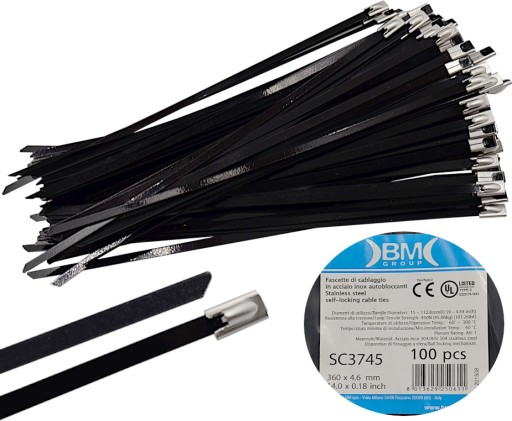 Opaska metalowa ze stali nierdzewnej 304 powlekane 360/4.6mm czarna 100szt