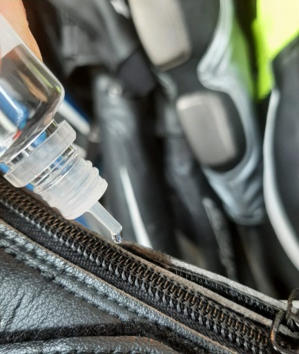 Za pomocą specjalnej końcówki preparat rozprowadzić po zasuniętym zamku błyskawicznym.