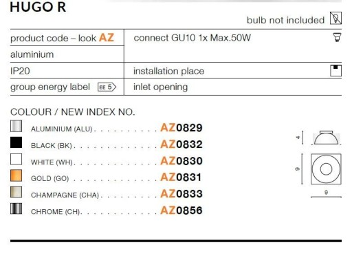 Odbłyśnik HUGO R AZ0830 – Azzardo, elemnt dekoracyjny do urozmaicenia oprawy sufitowej HUGO dostępnej w trzech wariantach kolorystycznych: czarnym, białym i srebrnym. Dzięki szerokiej gamie odbłyśników mamy wiele możliwości mieszania kolorów według własnej potrzeby.